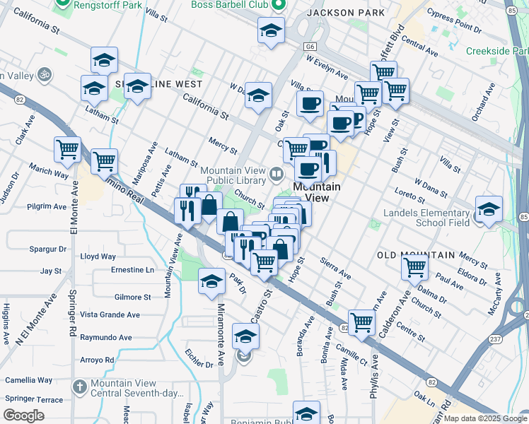 This location is in the Old Mountain View neighborhood in Mountain View. Nearby parks include Pioneer Park, Eagle Park and McKelvey Park.