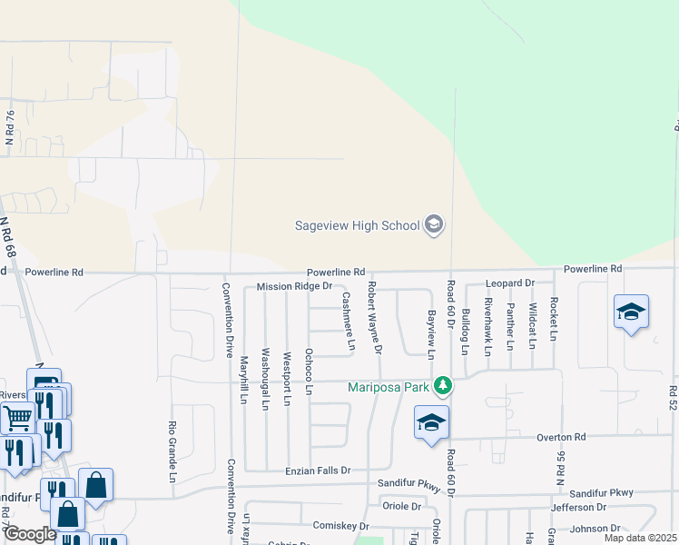 map of restaurants, bars, coffee shops, grocery stores, and more near Powerline Road in Pasco