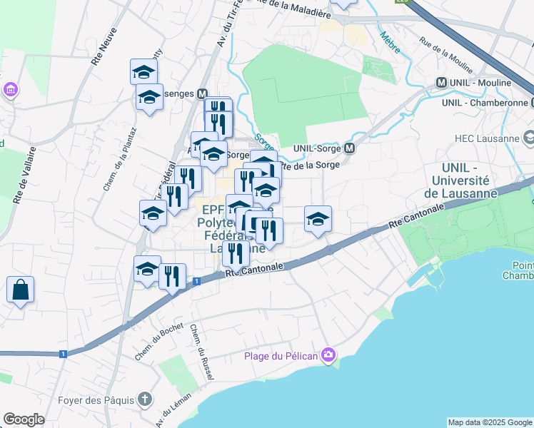 Nearby parks include Parc des Pierrettes, Parc du Pélican and Zone de Détente et de Sport du Russel.