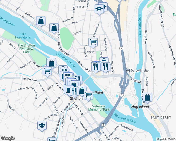 Roosevelt Dr & 3rd St is a nine minute walk from the Waterbury at the Derby-Shelton stop.
