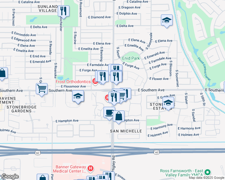 S Higley Rd & E Southern Ave has a Walk Score of 59 out of 100. This location is Somewhat Walkable so some errands can be accomplished on foot.