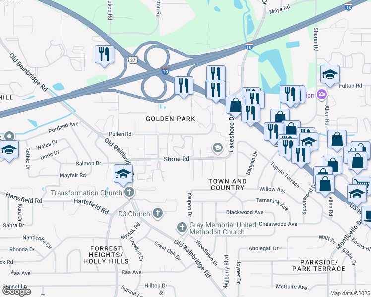 This location is in the Town & Country neighborhood in Tallahassee. The closest park is Levy Park.