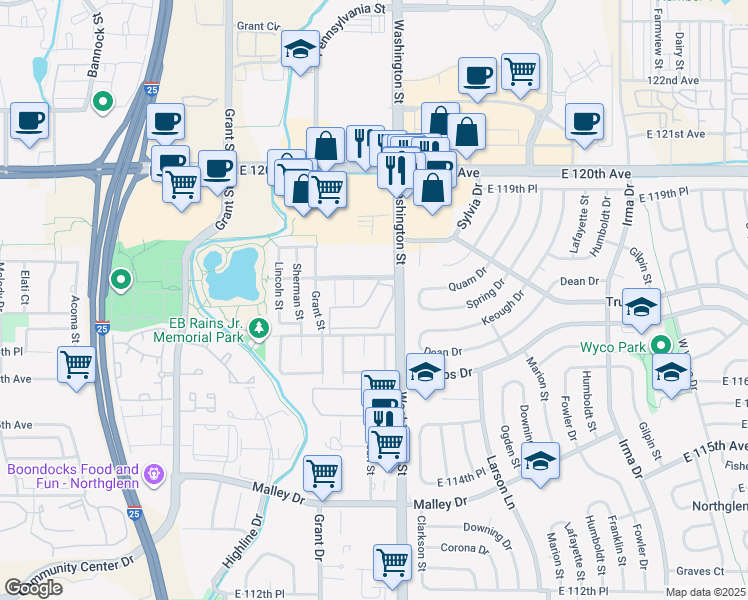 This location is in Northglenn. Nearby parks include E.B. Rains Jr Memorial Park, Webster Lake and Wyco Park.