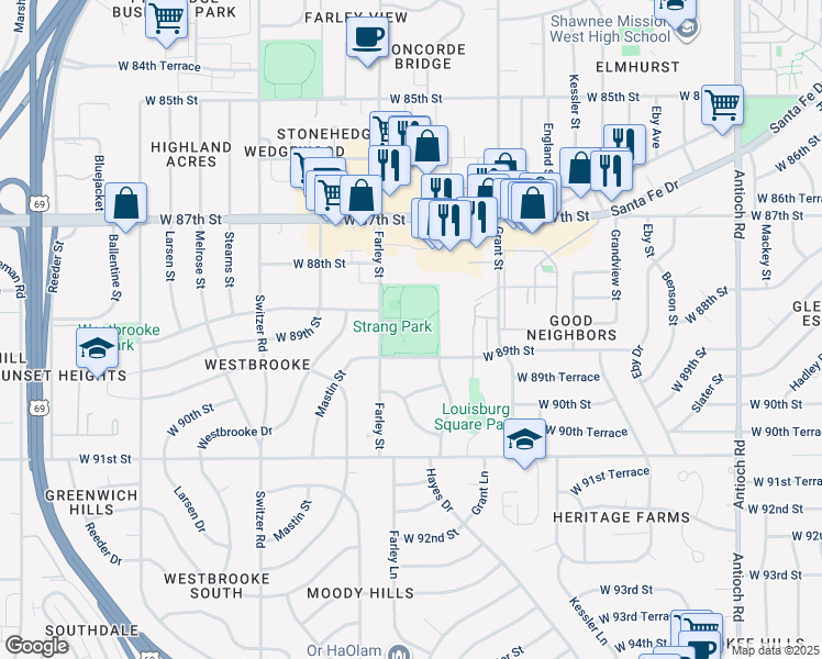 This location is in Overland Park. Nearby parks include Strang Park, Louisburg Square Park and Maple Hills Park.