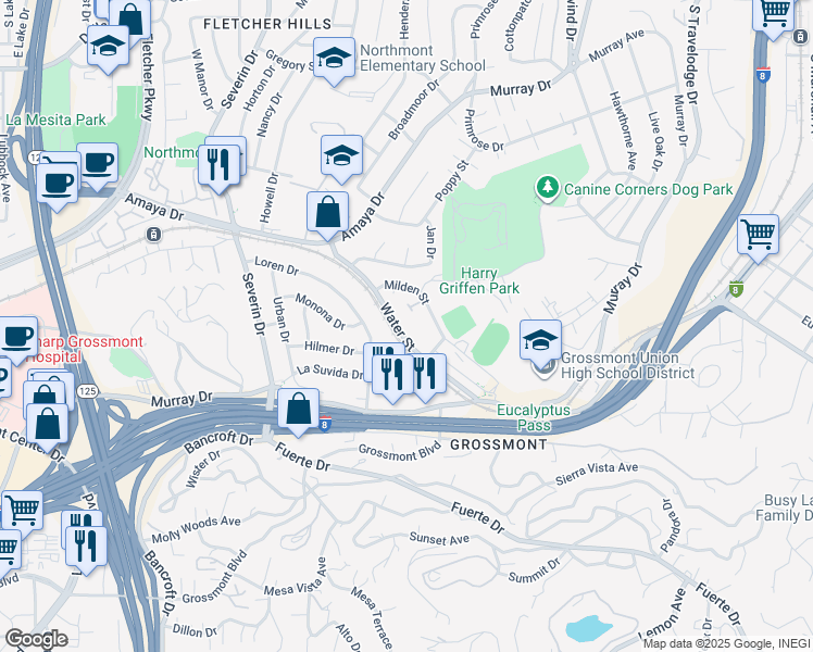 5711 Water Street is a 14 minute walk from the Green El Cajon - 12th & Imperial and the Orange El Cajon - Courthouse at the Amaya Drive Station stop.