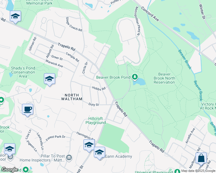 This location is in Waltham. Nearby parks include Ex- Met State Hospital, Beaver Brook North, Mass DCR and James Falzone Memorial Park.